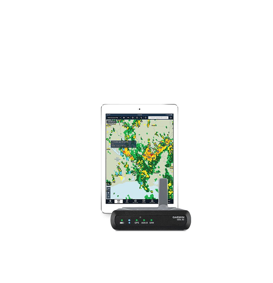 Avec les récepteurs portables Garmin GDL 51 et GDL 52 Aviation, les pilotes utilisant un iPad ou un iPhone avec l’application ForeFlight mobile peuvent consulter la météo en vol et les données SiriusXM Aviation transmises par satellite pour surveiller les fronts orageux, suivre les éclairs, les TAF, les METAR, les vents et bien plus encore.