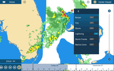 Boaters in the USA and southern Canada can subscribe to SiriusXM Marine Satellite Weather service to access up-to-date, detailed weather forecasts, Weather Radar, Lightning, Marine Warnings, Sea Surface Temperature and much more, all delivered instantly to your BBWX4 fourth-generation SiriusXM Satellite weather receiver for NavNet TZtouch, TZtouch2, and TZtouch3.