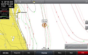 View SST Front Strength, which shows temperature changes that create distinct boundaries between bodies of water and attract bait fish. Strong or very strong Plankton Fronts illustrate areas preferable to game fish.