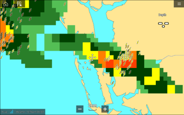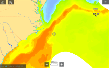Graphical, colour-coded representation of the water’s surface temperature. Used to determine favorable locations for specific fish species.