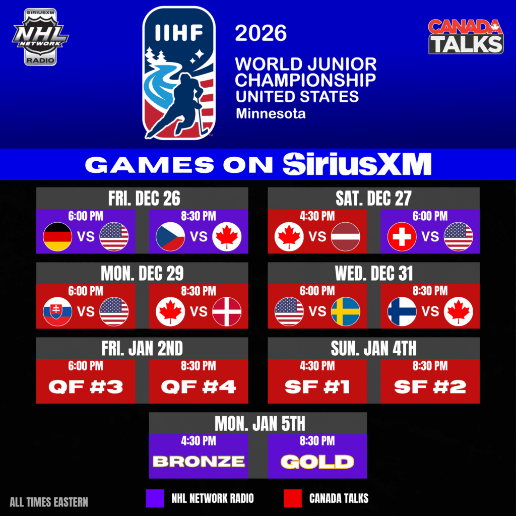 Hear the 2026 World Junior Hockey Championships on SiriusXM NHL Network Radio and Canda Talks