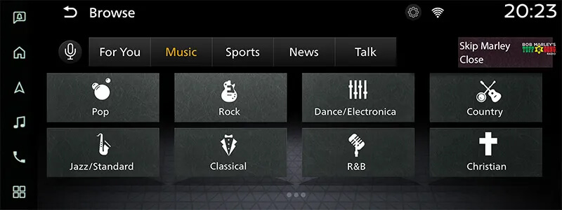 Naviguez le menu « Catégories de genre » pour découvrir de la musique, des nouvelles, du sport et des discussions