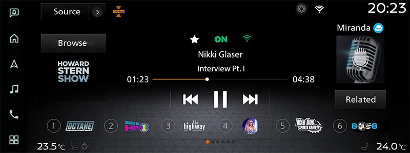 Notre technologie embarquée de pointe vous donne accès à une vaste sélection de chaînes, d’émissions et d’animateurs SiriusXM pour une expérience unique, avec des fonctions de personnalisation qui rendent la recherche de vos divertissements favoris plus facile que jamais.