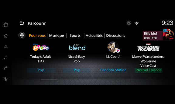Accédez à des émissions, des chaînes, des prestations et des entrevues à n’importe quel moment, au volant de votre véhicule.