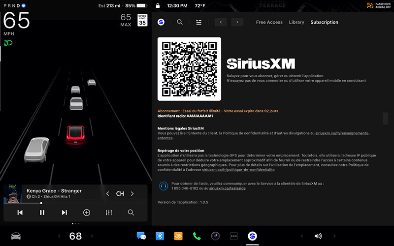 - Ouvrez SiriusXM dans votre Tesla et accédez à l’onglet Abonnement.