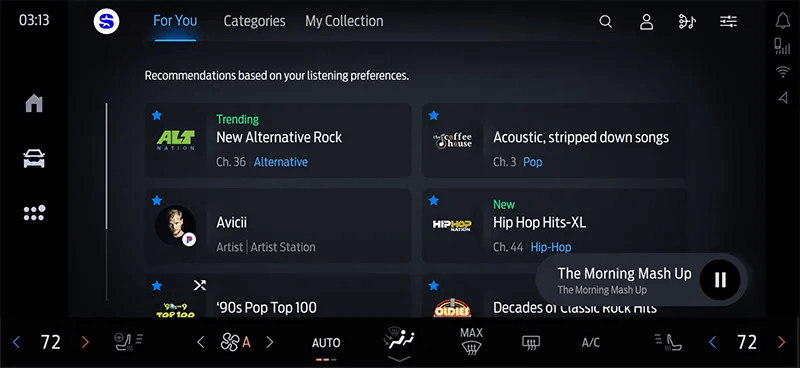 Our advanced in-car technology will guide you to the most SiriusXM channels, shows, and hosts for a ride that’s uniquely you, with personalization features to make discovering your perfect entertainment easier than ever before.