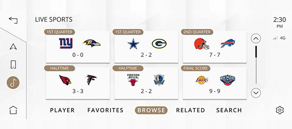 All NFL, NBA®, NHL®, college football and basketball games—in pregame, progress, or final states—are together, so you can get to all the action when you need it.