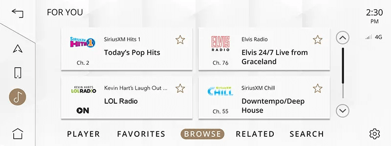 Our advanced in-car technology will guide you to the most SiriusXM channels, shows, and hosts for a ride that’s uniquely you, with personalization features to make discovering your perfect entertainment easier than ever before.