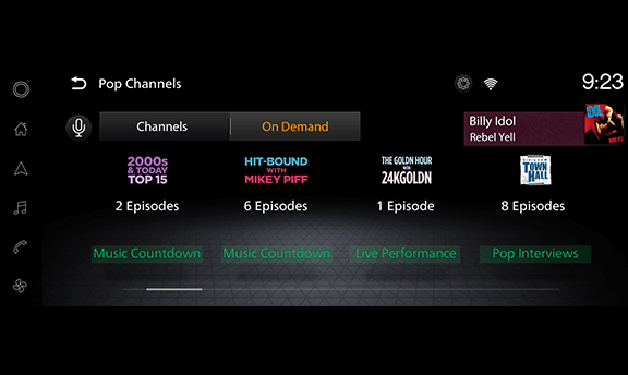 Enjoy shows, channels, performances, and interviews on your own time in your vehicle.