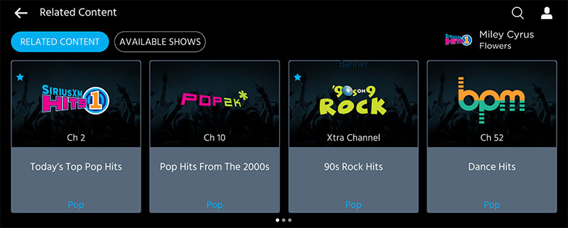Like what you’re hearing? Tap “Related” on the right of your screen to find other channels and On Demand shows that feature programming similar to what you’re tuned in to at any given moment.