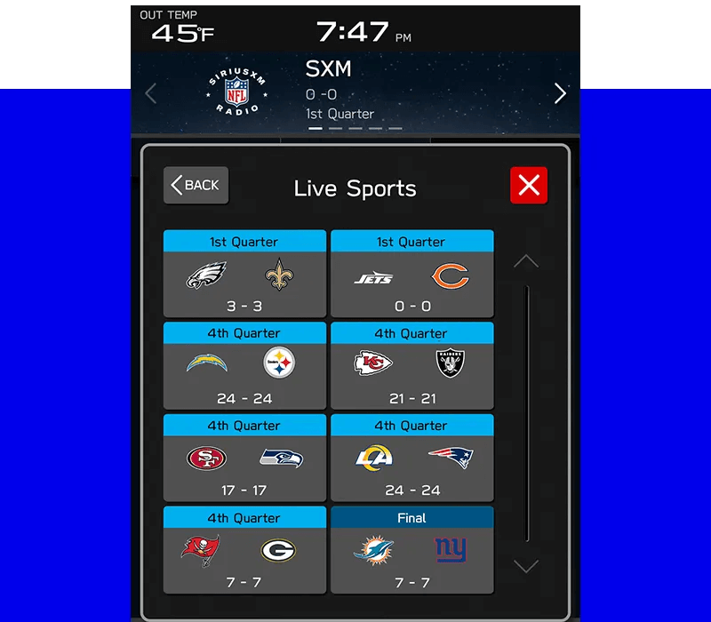 Use our Vehicle Availability tool to check for additional SiriusXM features that may be available in your vehicle.